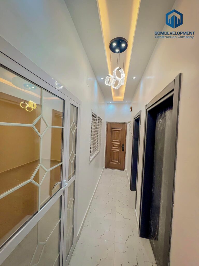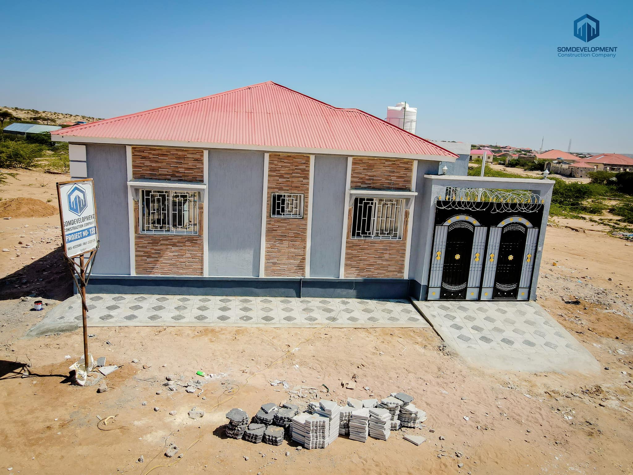 waa guri bungalow ah kuna fadhiya cabir dhan 12m*12m, wuxuu ka kooban yahay 3bedroom, living room, kitchen,